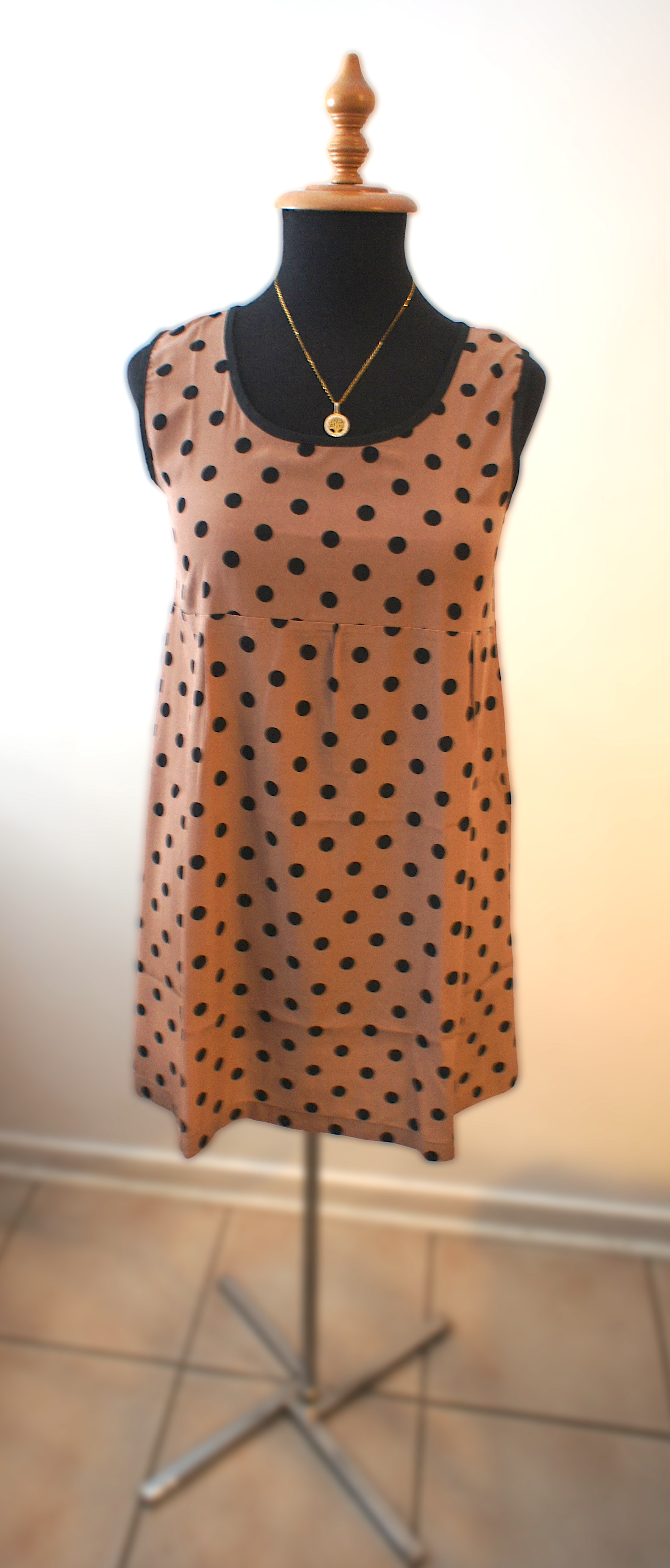 Vestido Café con Lunares Negros
